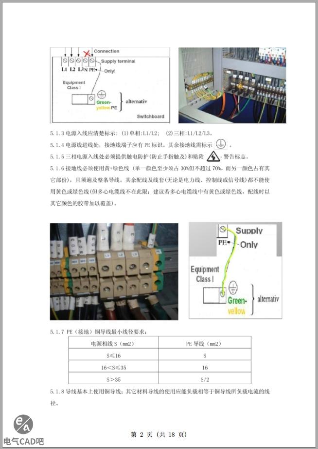 今天给大家分享的是一份总结自EN 60204-1的CE安全标准规范(电气类),有对产品需求符号欧盟标准可参考本安全文档,本标准里规定了电气产品中电源、导线和电缆、断电装置、控制电路、控制功能、操作界面、电动机和附属设备、技术文档和测试的相关规定,部分截图如下,可以登陆电气CAD吧下载完整的标准。