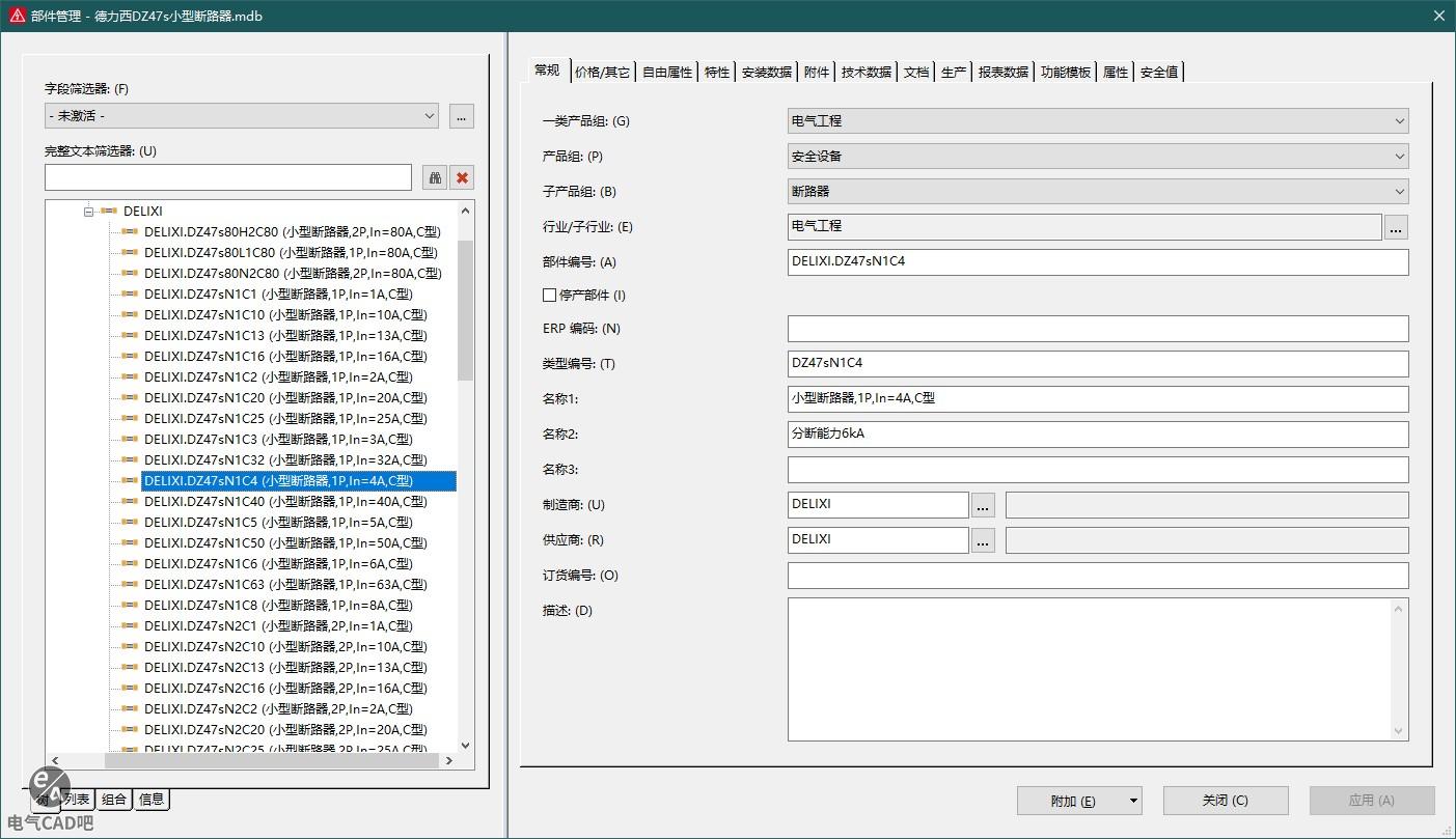 当前位置: 首页EPLAN资源与库 今天给大家分享的是德力西DZ47s系列小型断路器,DZ47s是一款小型保护断路器。适用于交流50HZ,额定电压AC230/400V,具有过载保护、短路保护和控制隔离等功能。已按分断能力筛选供不同需求来下载,有需要的小伙伴们可在PC端登陆电气CAD吧后下载。 http://www.cad-bbs.cn/delixi-dz47s http://www.cad-bbs.com/delixi-dz47s 部件库格式包含: EDZ XML 包含数据有: EPLAN部件信息包含有:部件编号、名称、功能模板、2D宏、外形尺寸、图片等。 EDZ文件中最大尺寸:588 kB 导入时间约<10S 部件总数量:167个 声明:您必须遵守我们的协议,如果您下载了该资源行为将被视为对《免责声明》全部内容的认可,本网站资源大都来自原创,也有少部分来自互联网收集,仅供用于学习和交流,请勿用于商业用途。如有侵权、不妥之处,请联系站长并出示版权证明以便删除。敬请谅解! 侵权删帖/违法举报/投稿等事物联系邮箱:cad-bbs@qq.com部件库 电气CAD吧终身VIP 收藏 海报分享