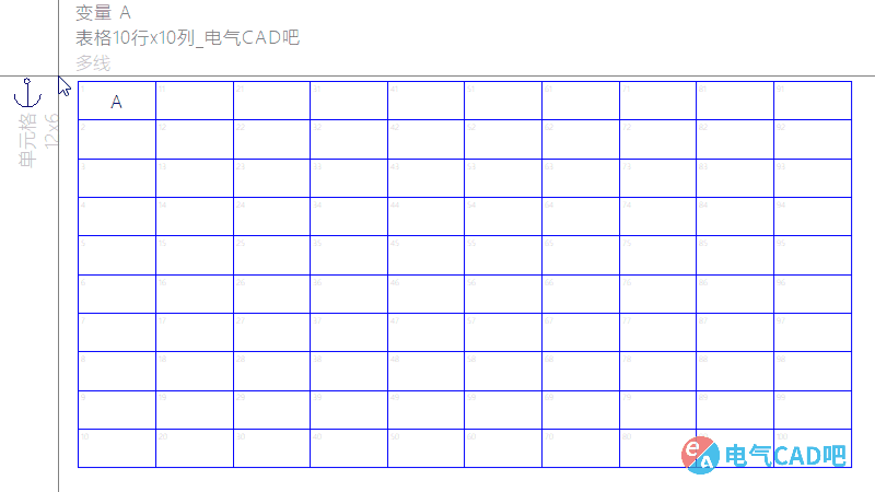 在下面这份例子中,我拼成了10×10的一份表格,在批量编辑时,EPLAN编辑的顺序是从上到下从左到右,为了便于定位,我还在每个单元格左上角用技术参数标注了当前单元格号,你可以随时按U显示切换显示,并不用担心被打印出来。