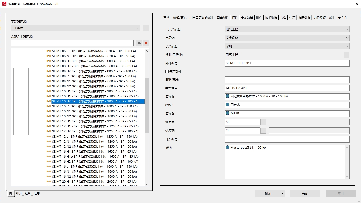 - EPLAN部件信息含:部件编号、名称、描述、2D宏、功能模板、图片、文档等。