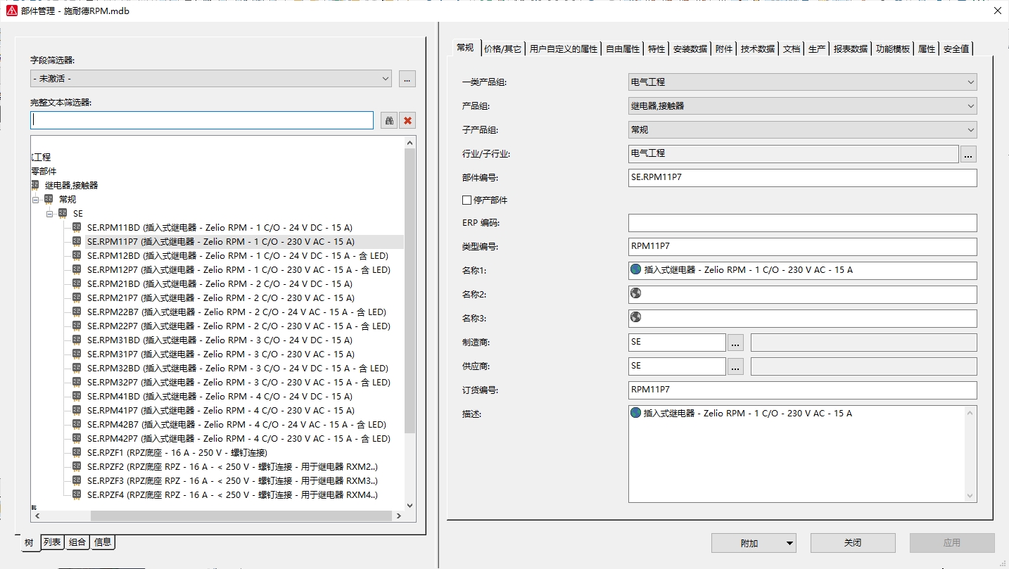 - EPLAN部件信息含:部件编号、名称、描述、2D/3D宏、功能模板、图片、文档等。
